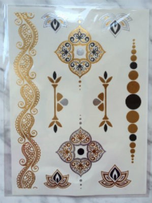 )Zlaté a strieborné tetovania rôznych náramkov,náhrdelníkov,henna vzorov či jemných ozdôb skrášľujú aj zahraničné celebrity, ktoré ich s noblesou nosia spolu so skutočnými šperkami. Nebojte sa experimentovať a vytetujte si rôzne varianty a kombinácie. V tomto zásada "menej je niekedy viac" absolútne neplatí :-)
