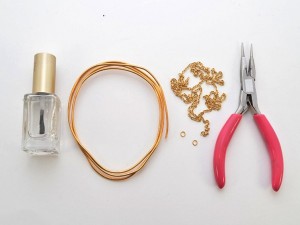 Pomôcky : Lak,Drôtik,Kliešte,Retiazka,Zlaté malé kolieska na uchytenie prívesku.